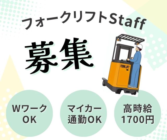 【高槻市】時給1700円の高時給案件!新倉庫でのリフトマン募集!車通勤OK【58506】