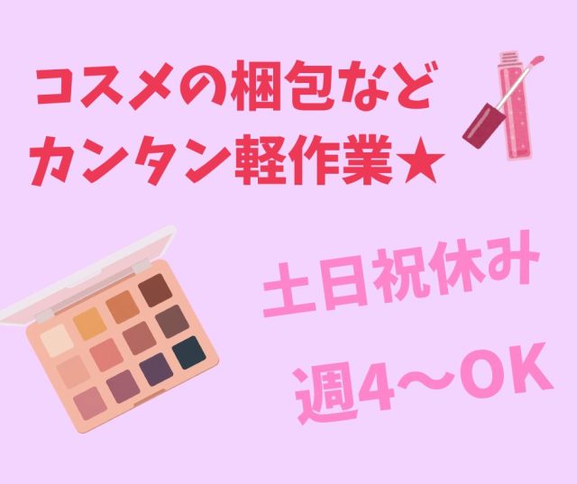 【東大阪市】駅チカ!きれいな工場で化粧品の検査・梱包作業♪週4日~時短応相談可!【63015】【時給】1,250円~1,563円 *週払いOK 交通費全額支給 -